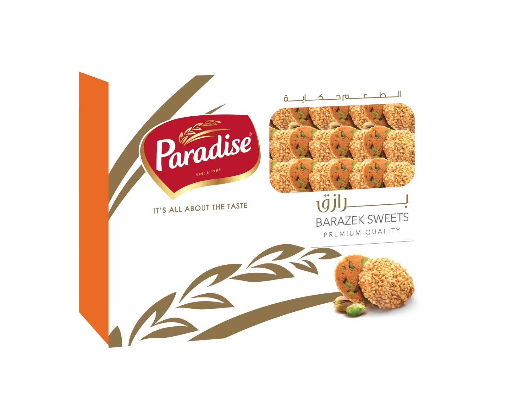 Pack containing a difference of sweets (Barazek, Ghraybeh, Cookies, Maamoul, and Turkish chocolate biscuits), with each piece wrapped.