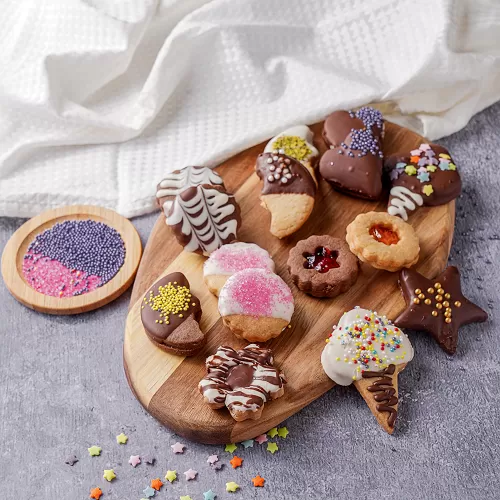 Small Turkish biscuits with a crispy texture and an irresistible taste. A blend of vanilla and chocolate flavors with a smooth chocolate filling inside. Perfect with coffee, tea, or as a snack for both kids and adults.